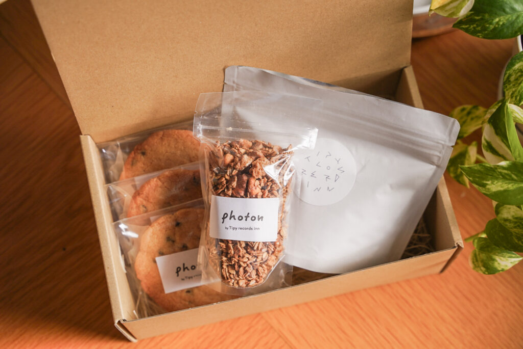 「宿泊チケット」は、まち歩きで小田原の暮らしを体験できるお試し移住体験や、小田原の食の魅力をまるごと味わえるごちそうプランなどからお選びいただけます。そして、カフェ&ラウンジphotonで人気の手づくりスイーツとオリジナルコーヒーの「スイーツ詰め合わせ」は、Tipyオリジナル『おだわらローカルマップ』付きでご自宅にお届けします。